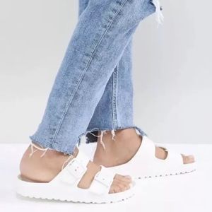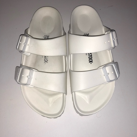 white plastic birkenstocks