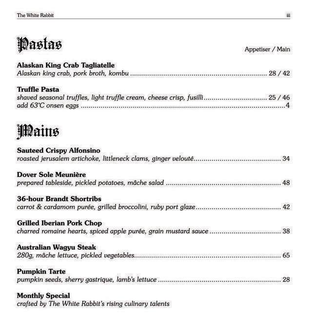 white rabbit menu