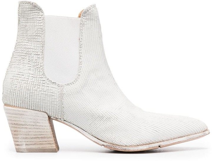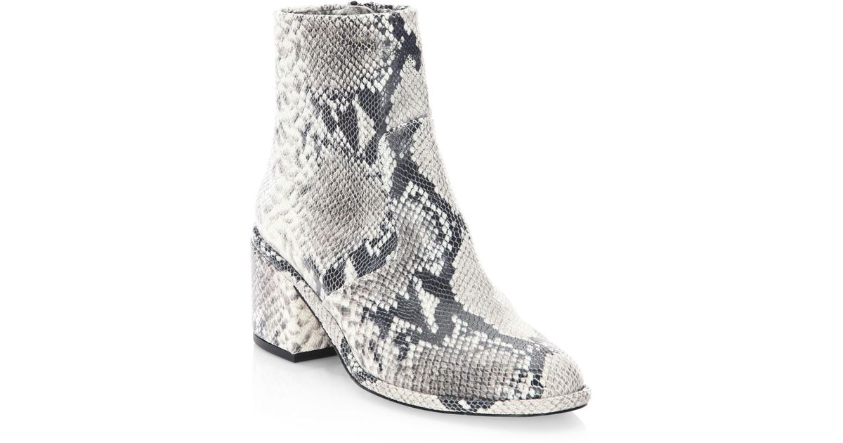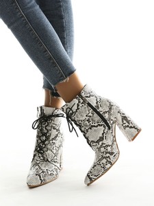 white snakeskin booties