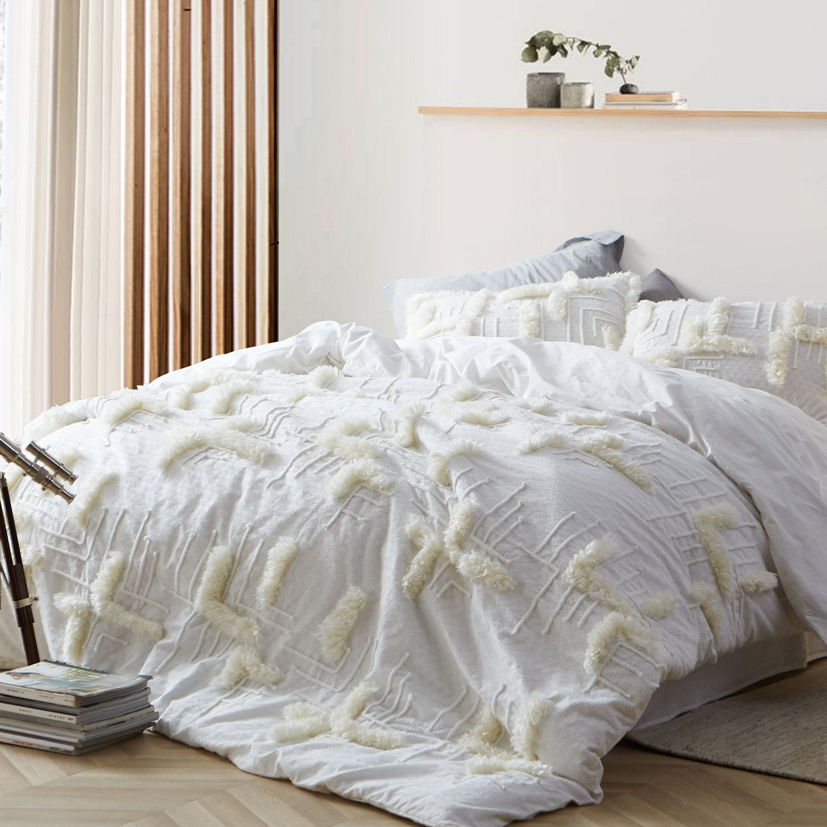white textured bedding