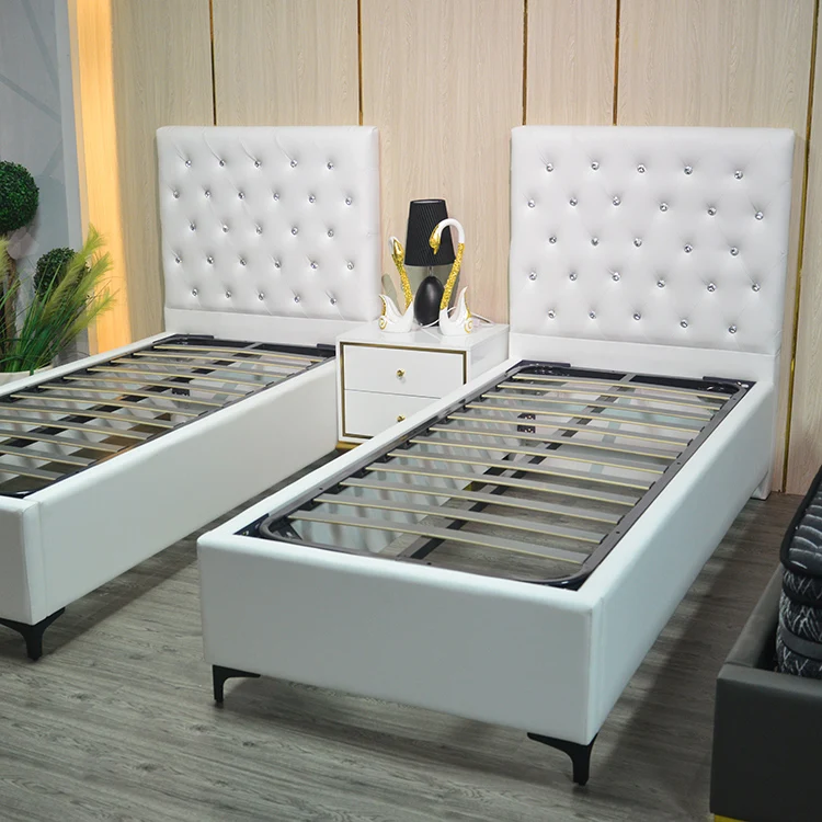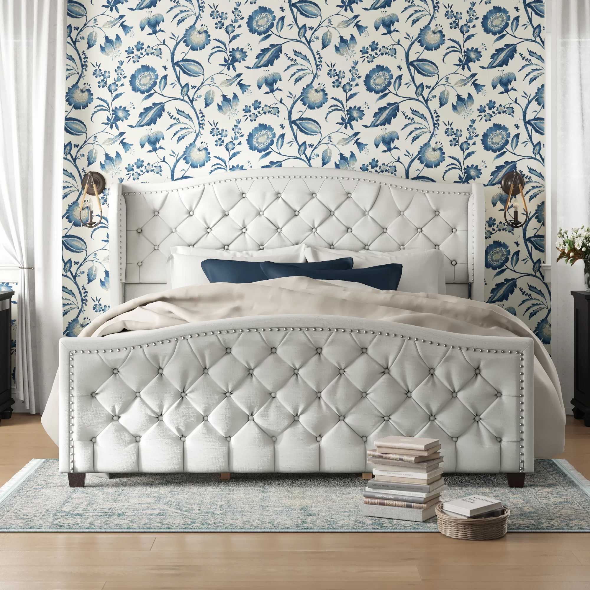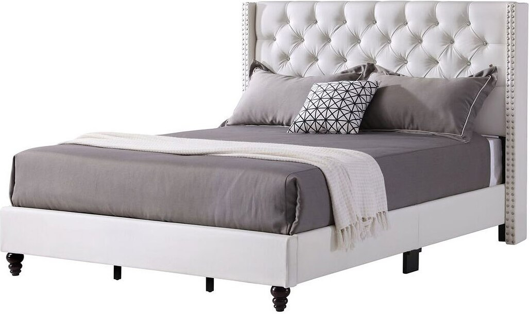 white upholstered bed