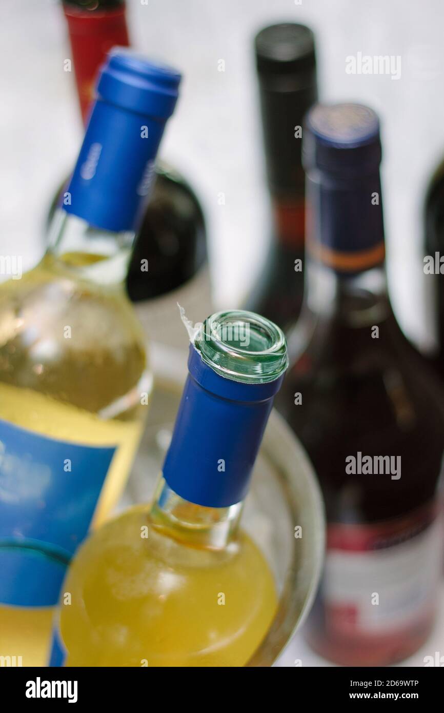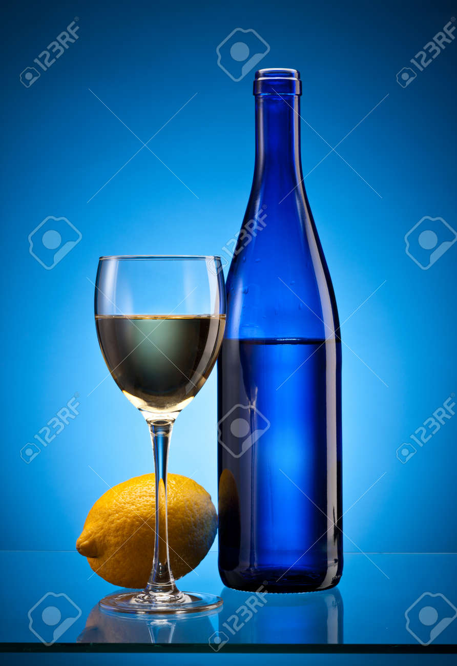 white wine blue bottle
