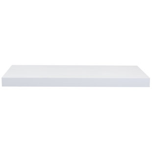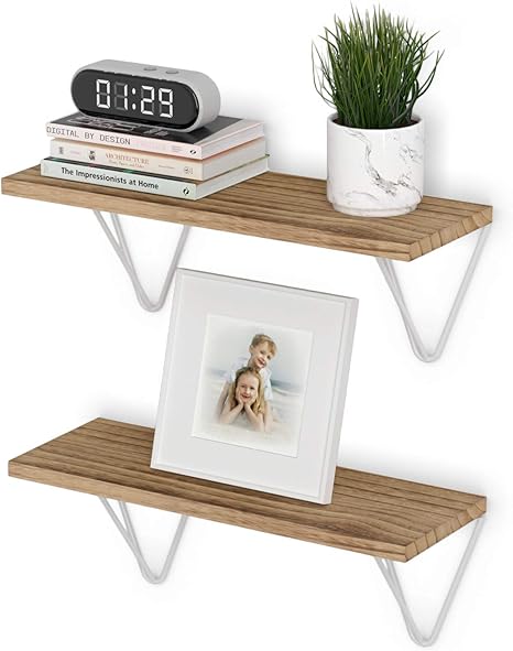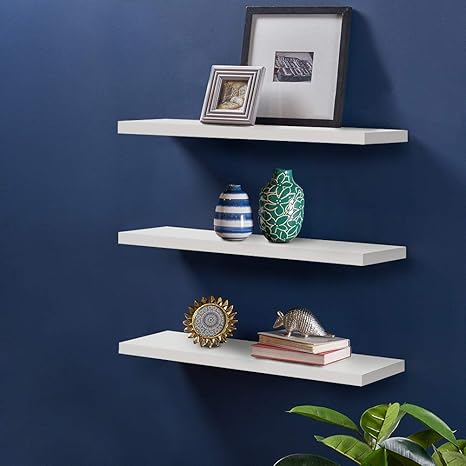 white wood floating shelves