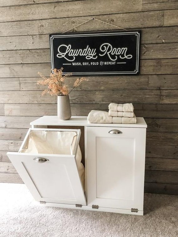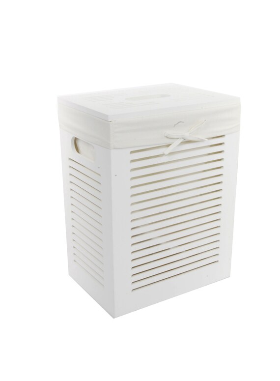 white wood laundry basket