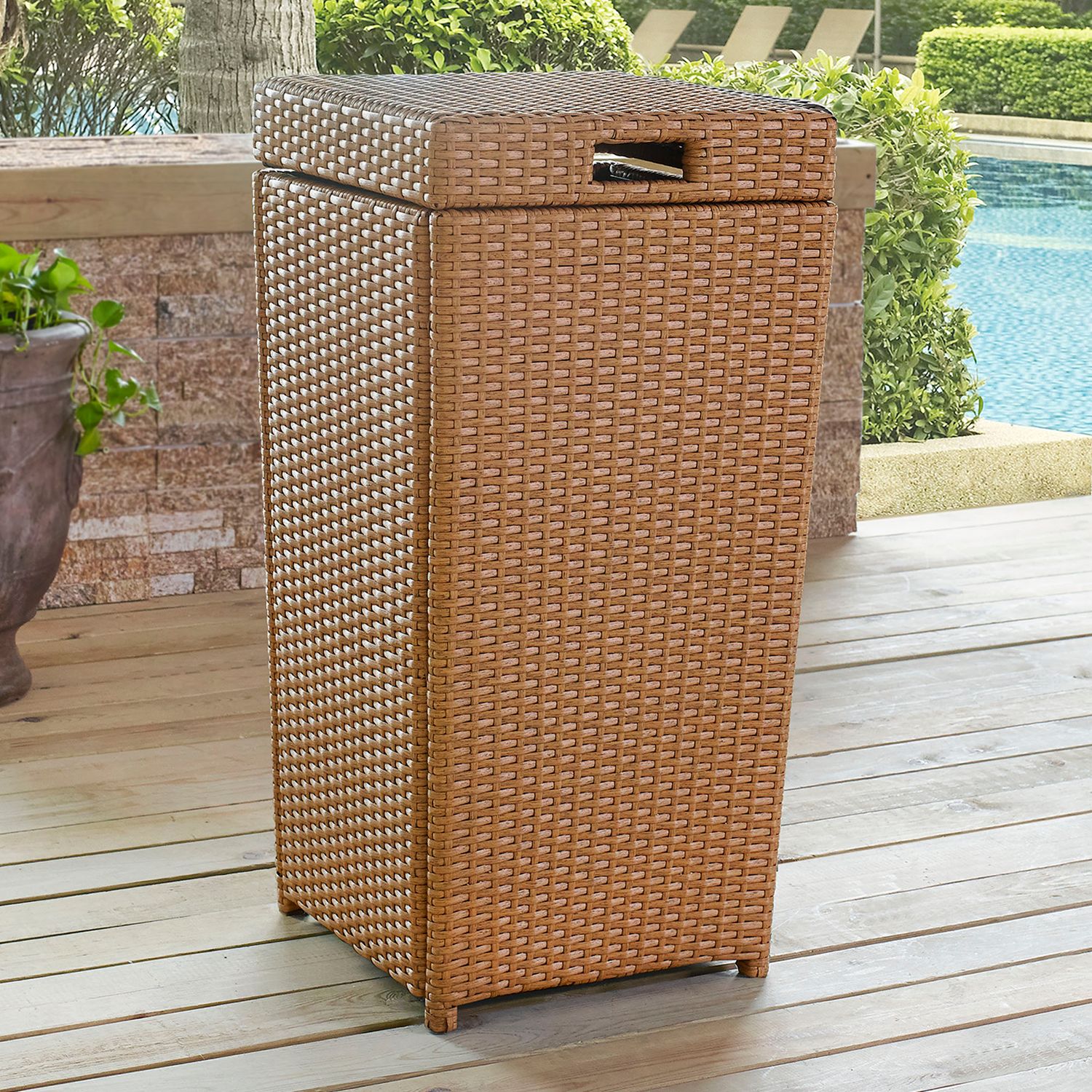 wicker trash can