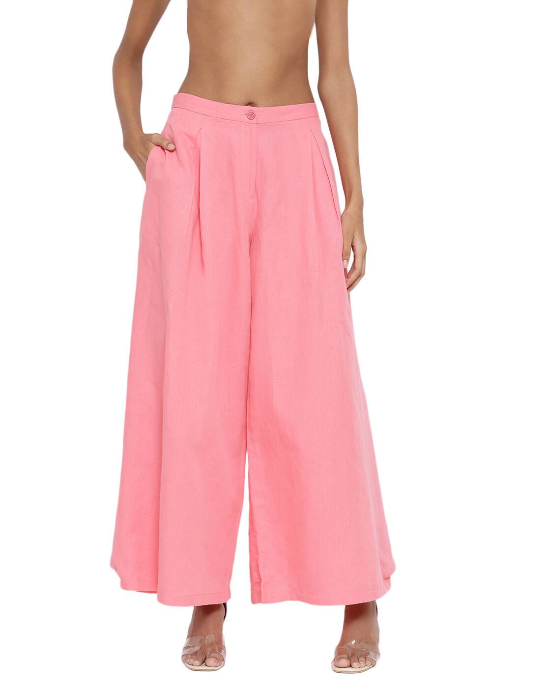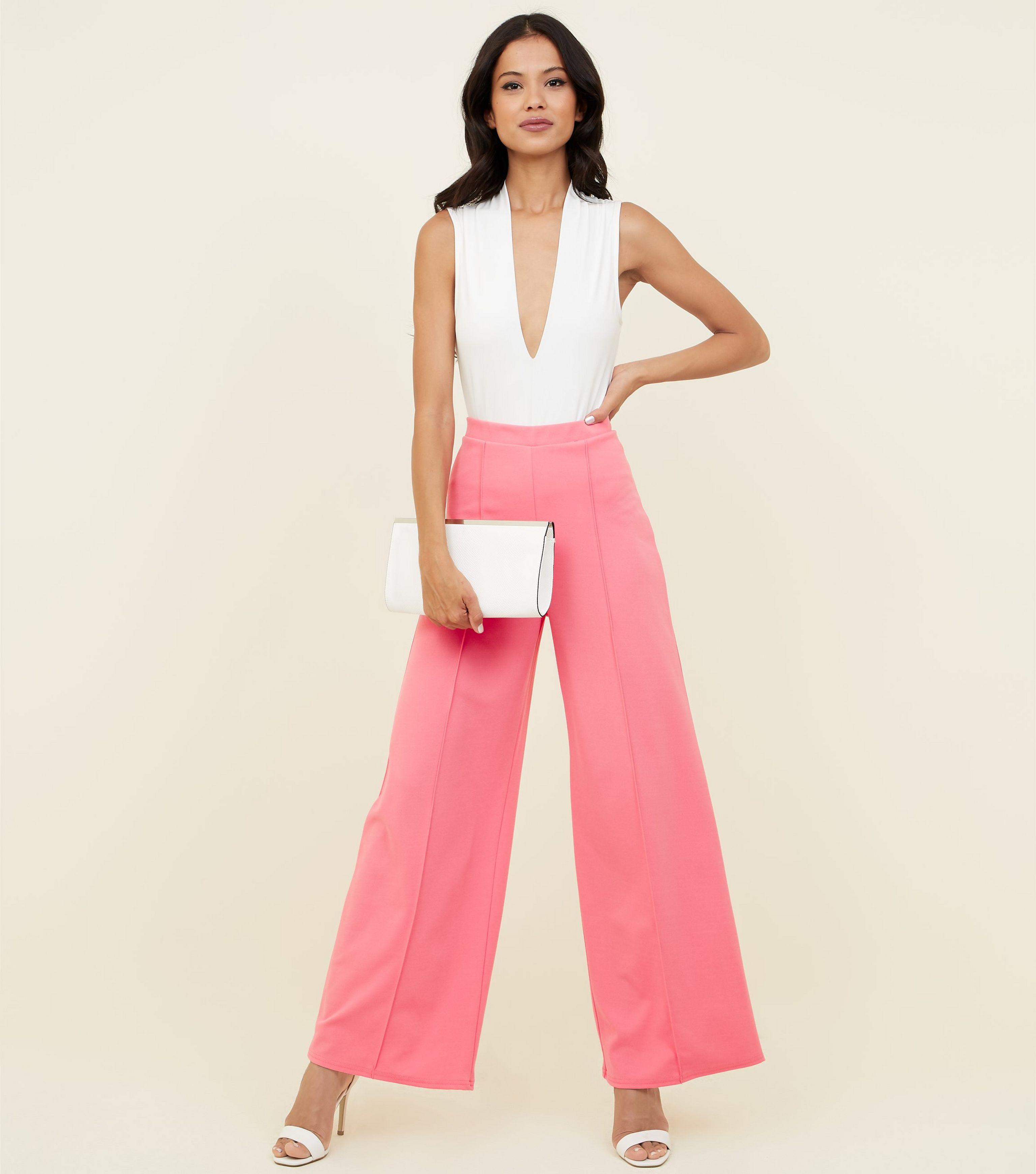 wide leg pink trousers