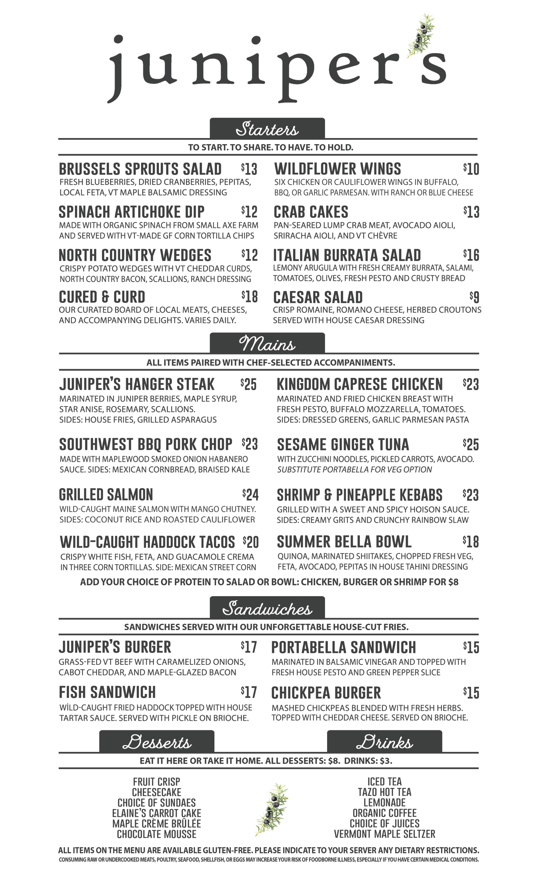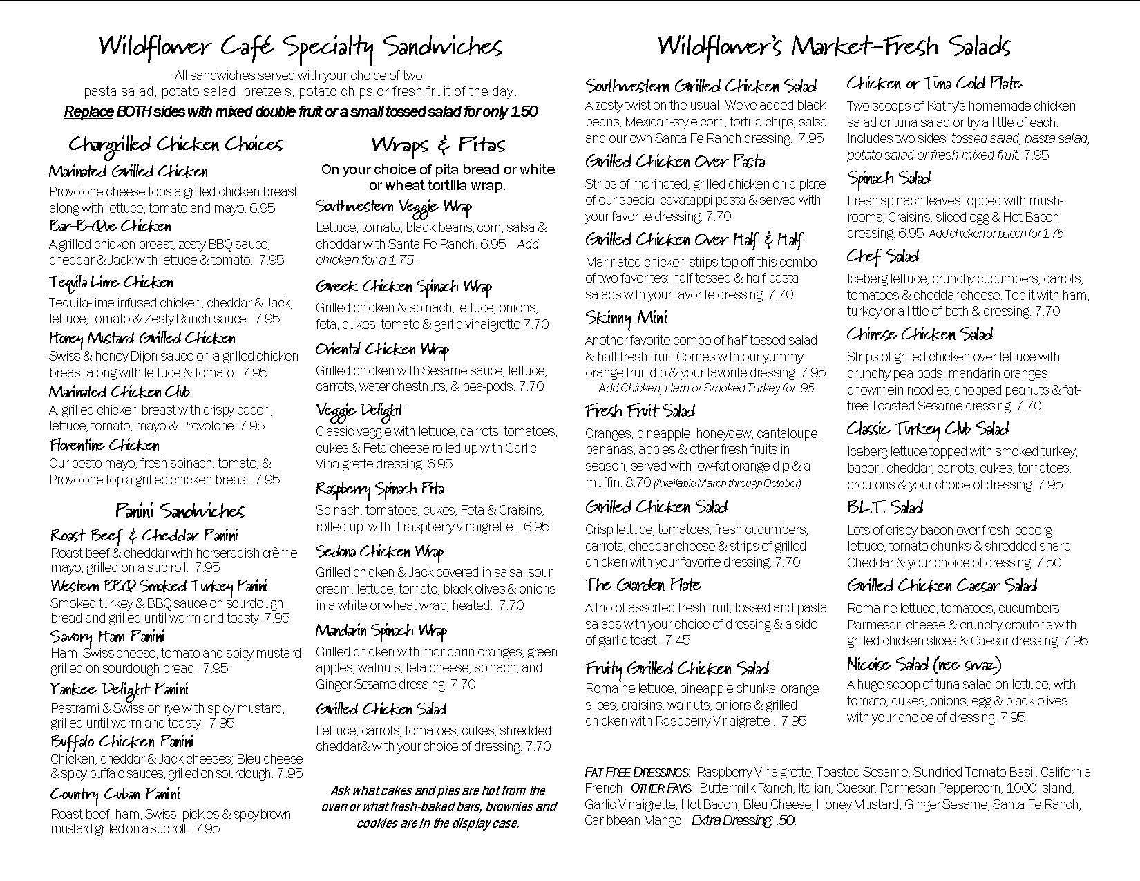 wildflower menu