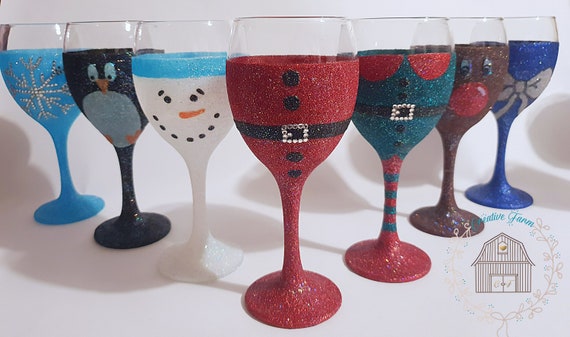 wine glasses decorated for christmas