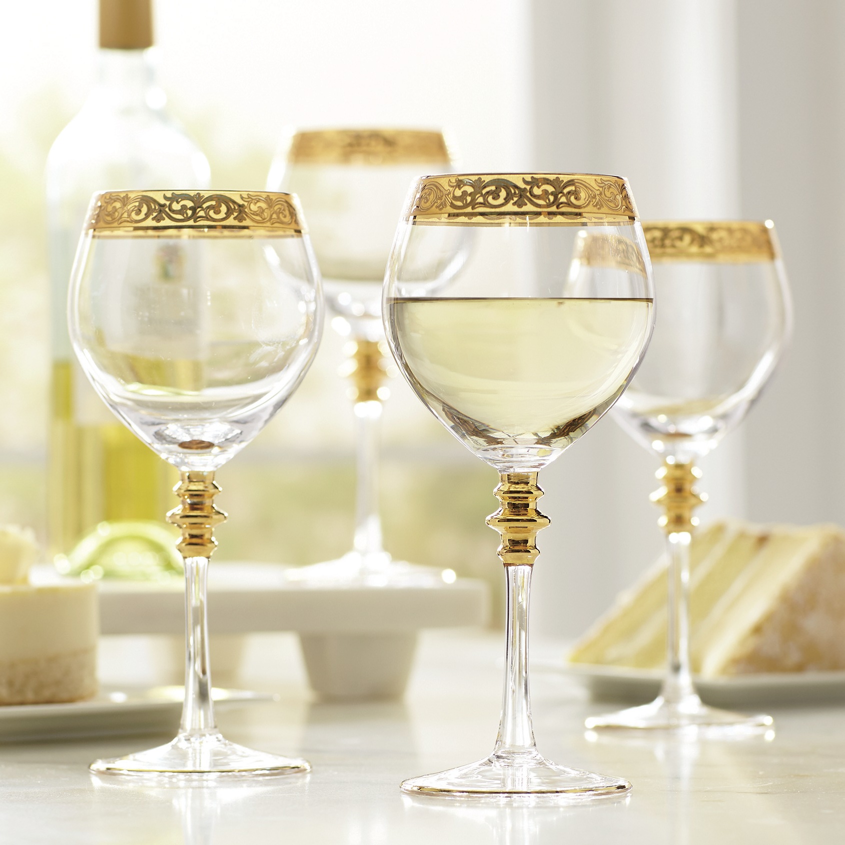 wine glasses with gold