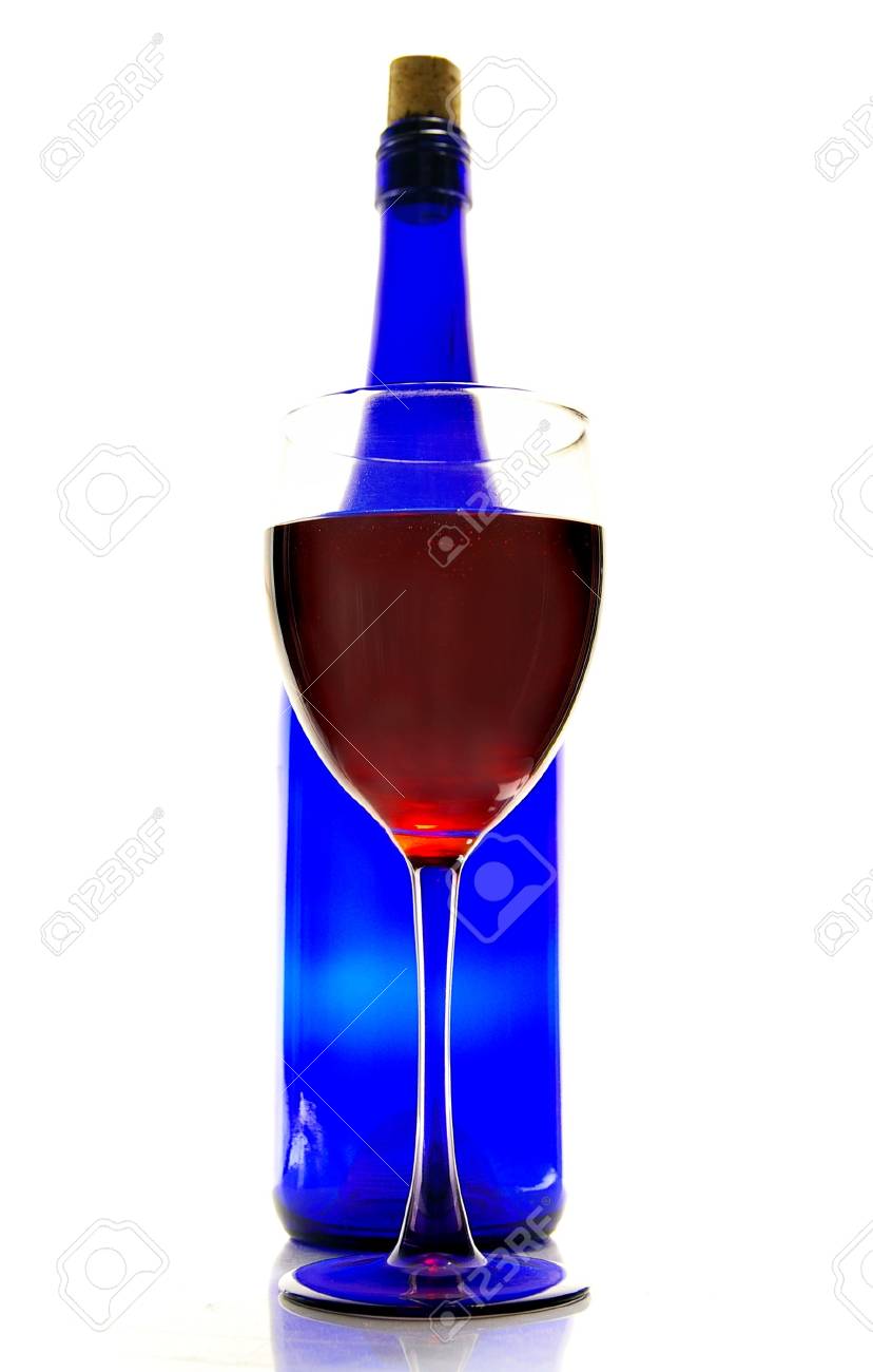 wine in blue bottle
