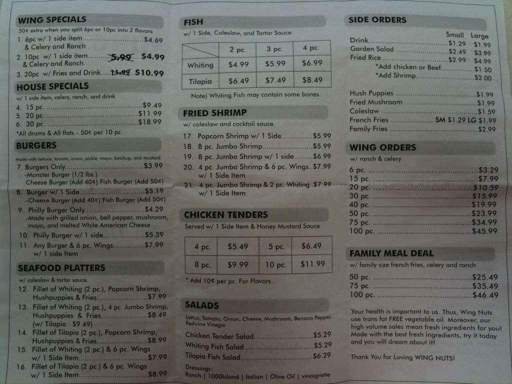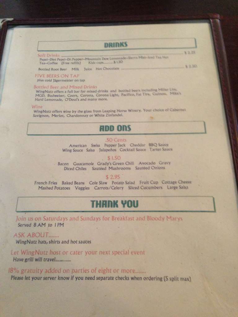 wing nutz menu