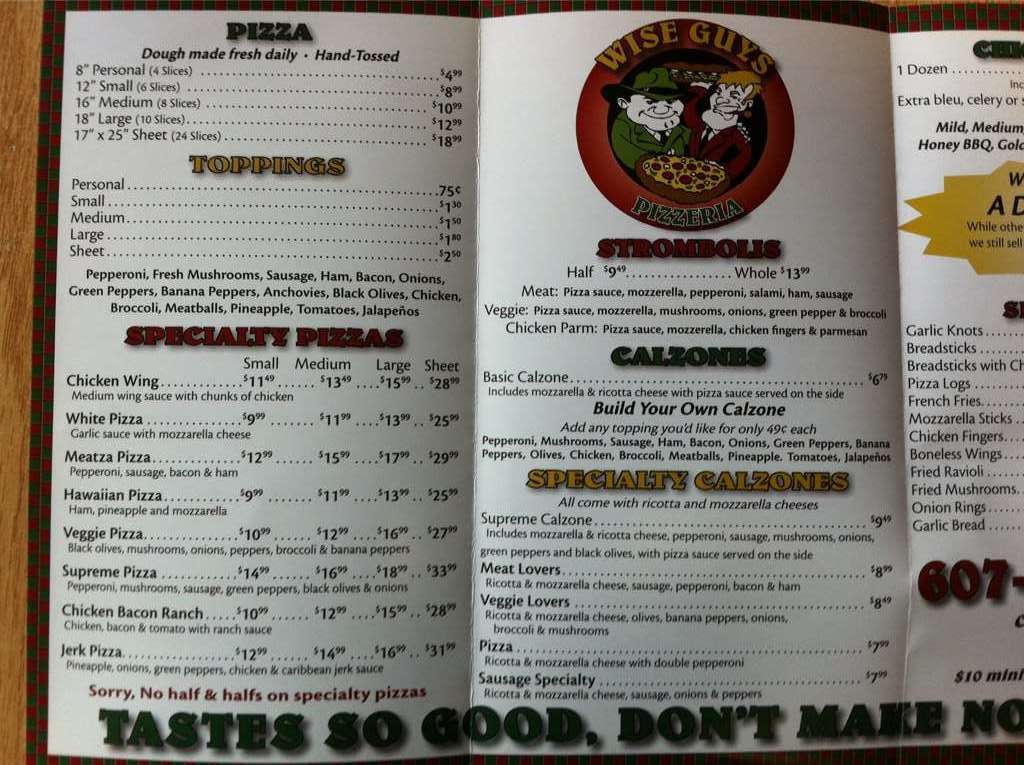 wise guys pizza menu