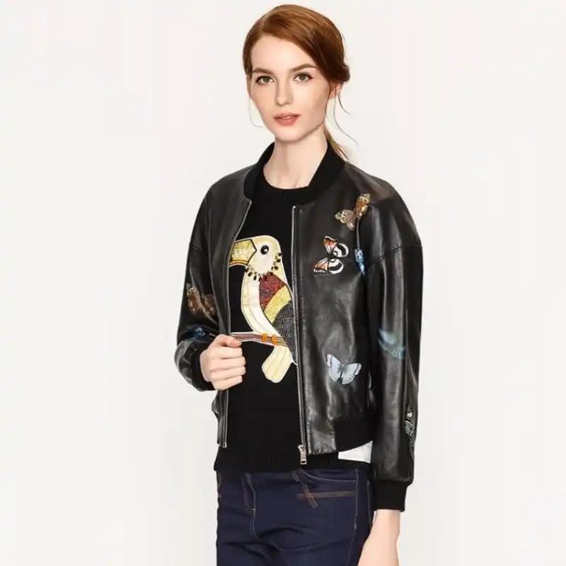 women's genuine leather bomber jackets