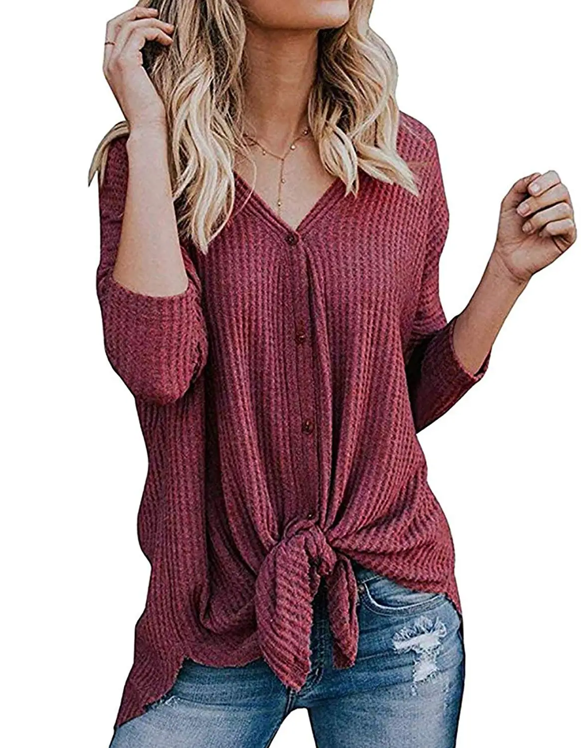 women's waffle thermal shirts