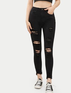 womens black ripped skinny jeans