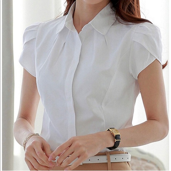 womens white short sleeve blouse