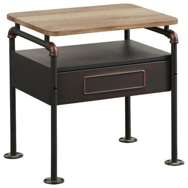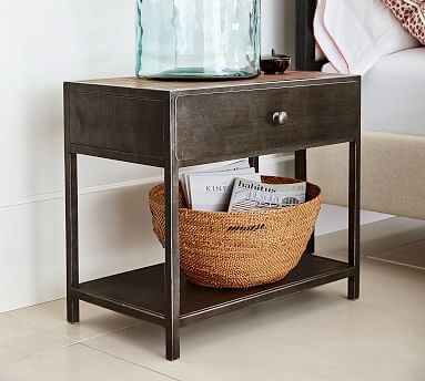 wood and metal nightstand