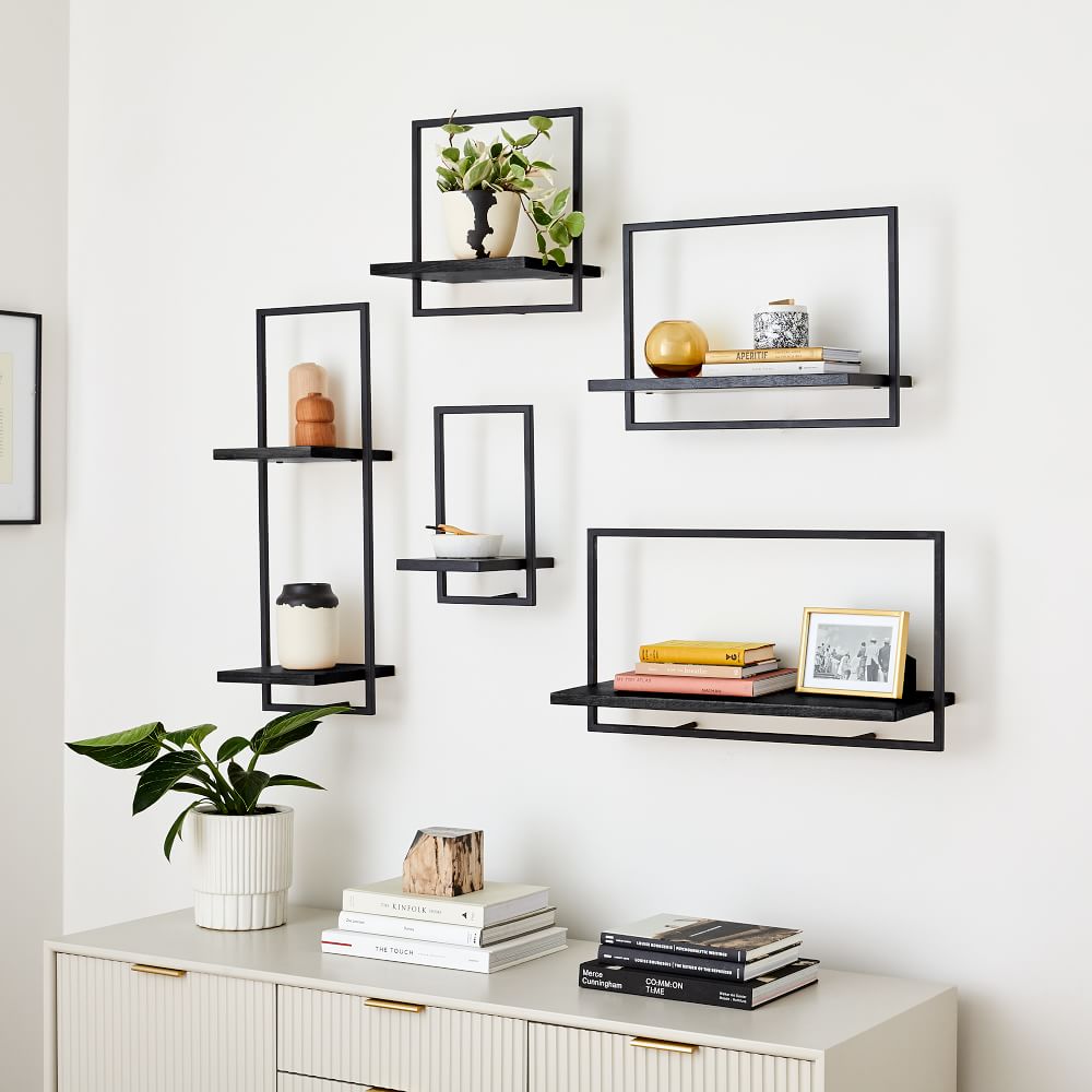 wood and metal shelves