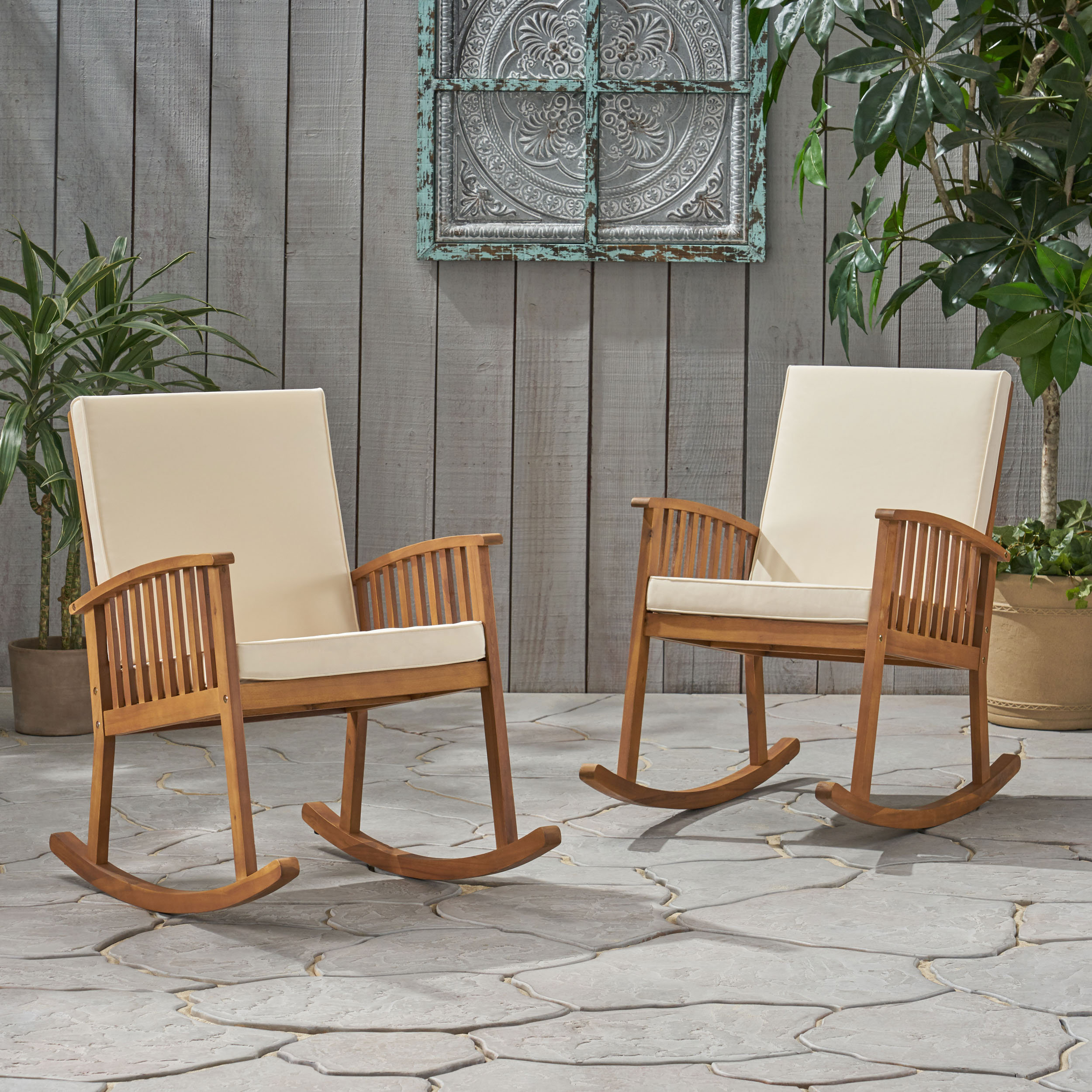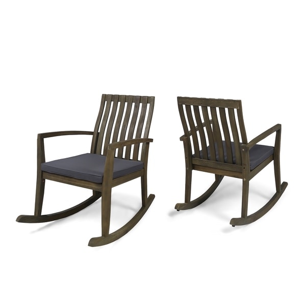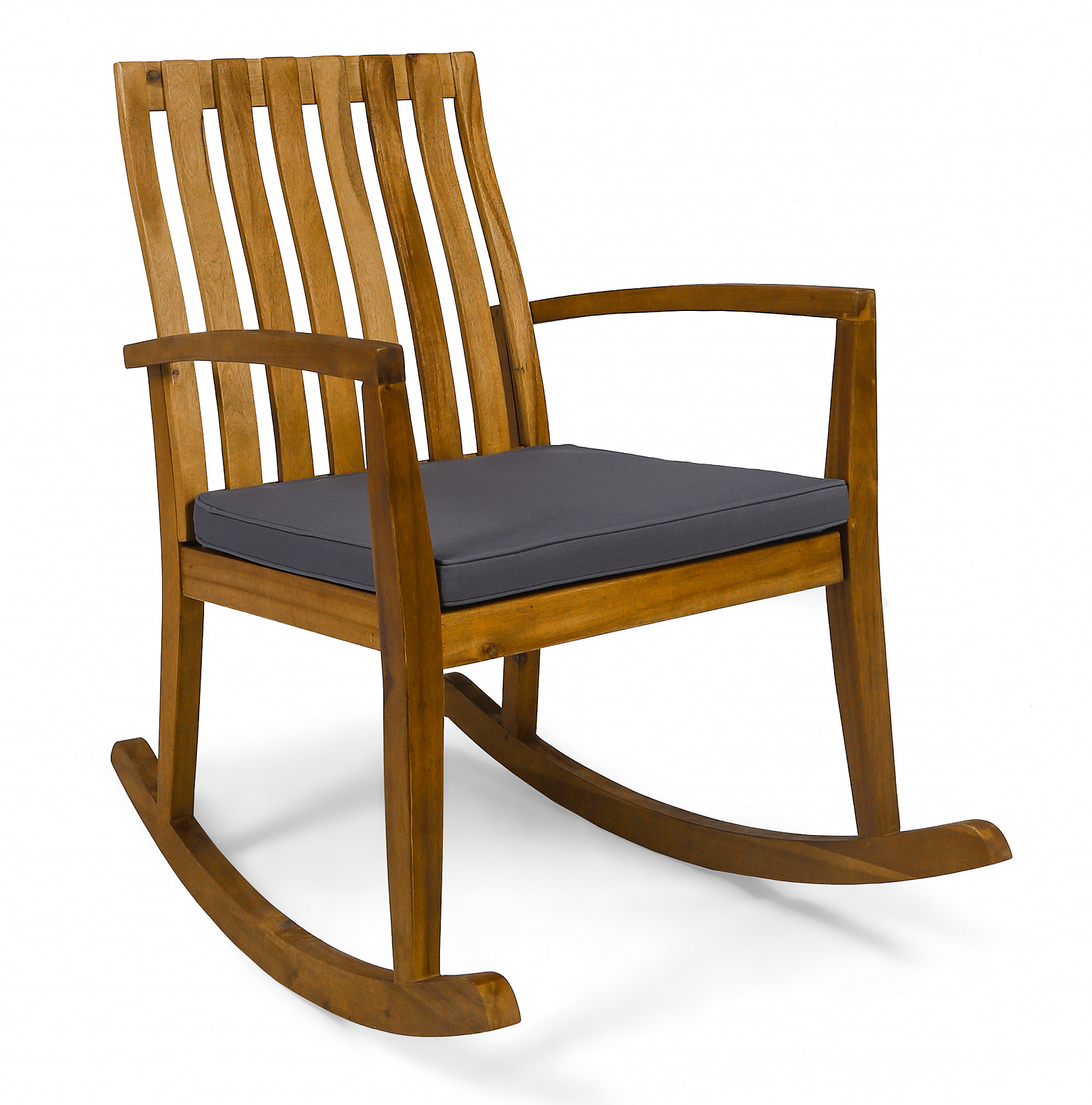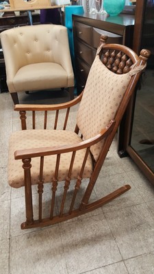 wooden rocking chair with cushions