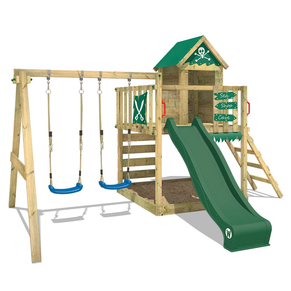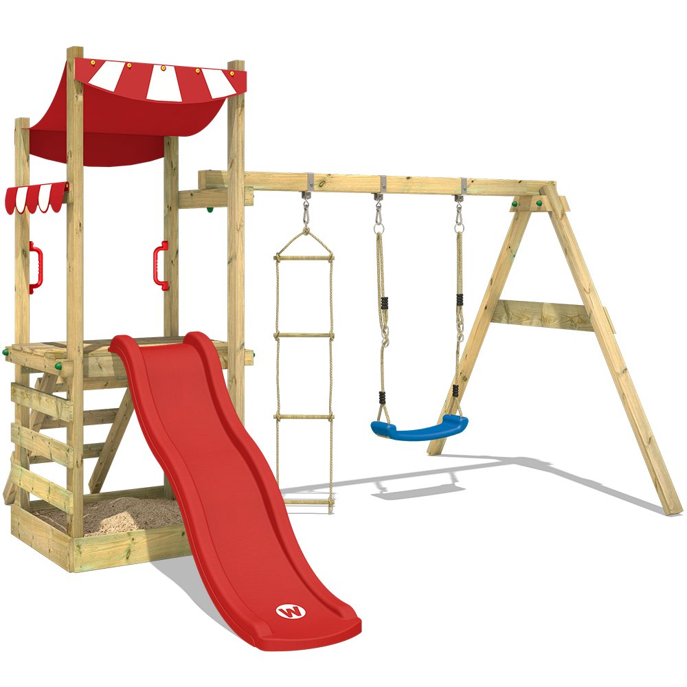 wooden slide climbing frame