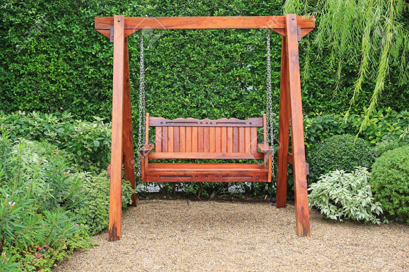 wooden swing chair garden