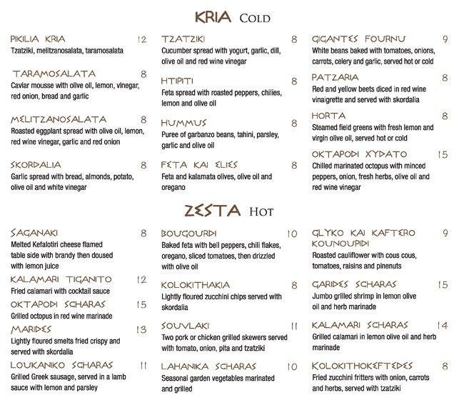 yannis menu