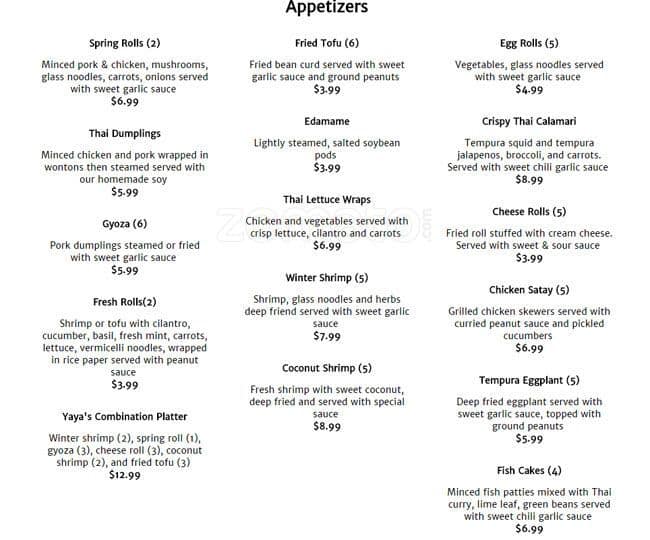 yayas menu
