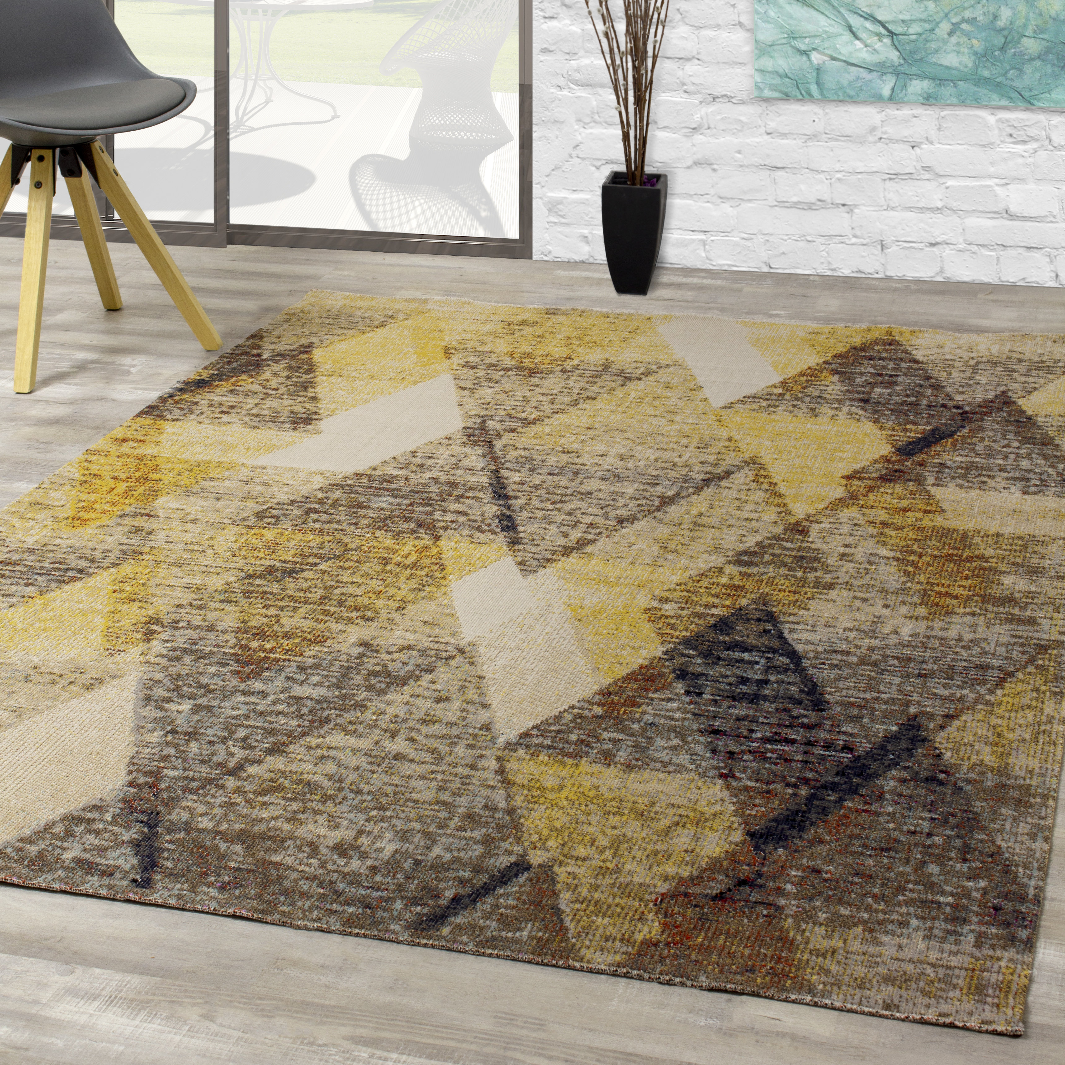 yellow and gray rug