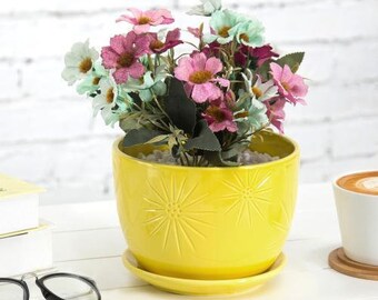 yellow flower pot