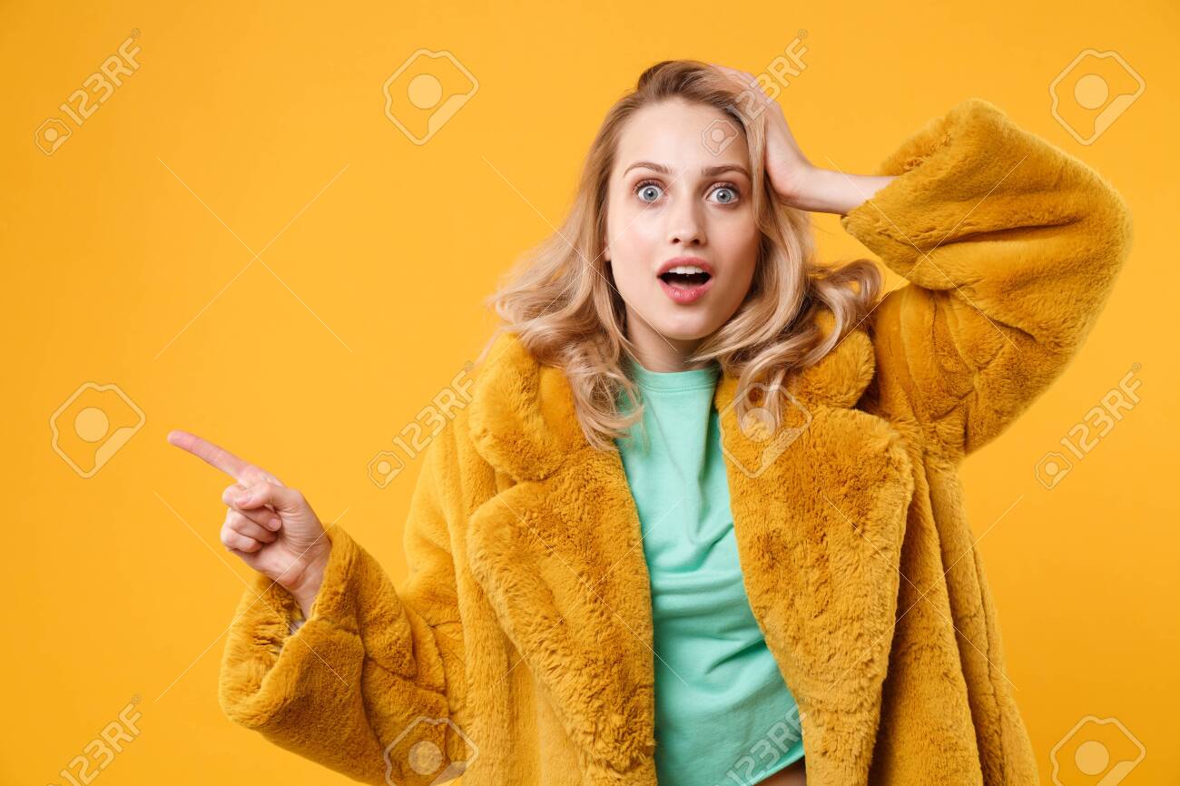 yellow fur coat