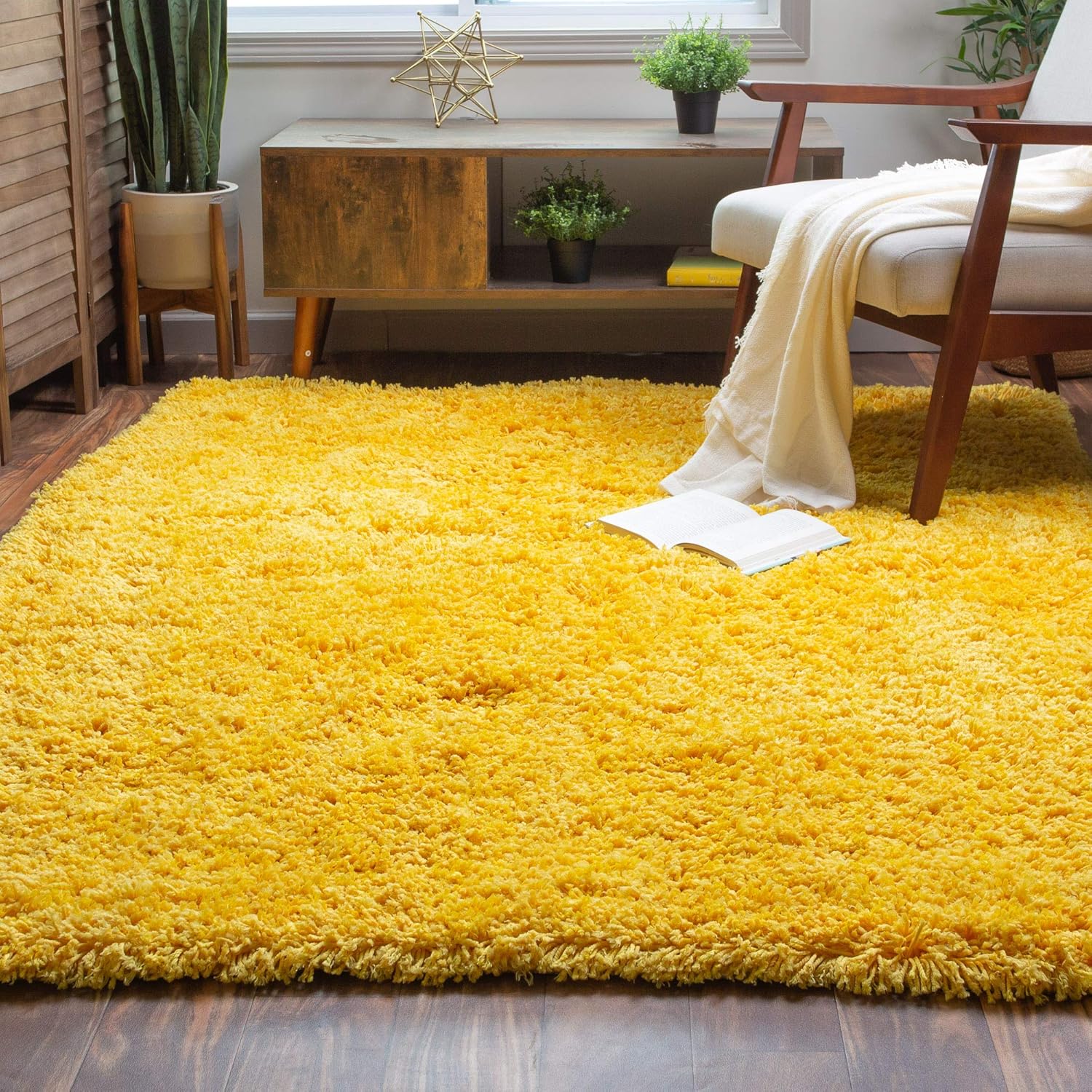 yellow shag rug