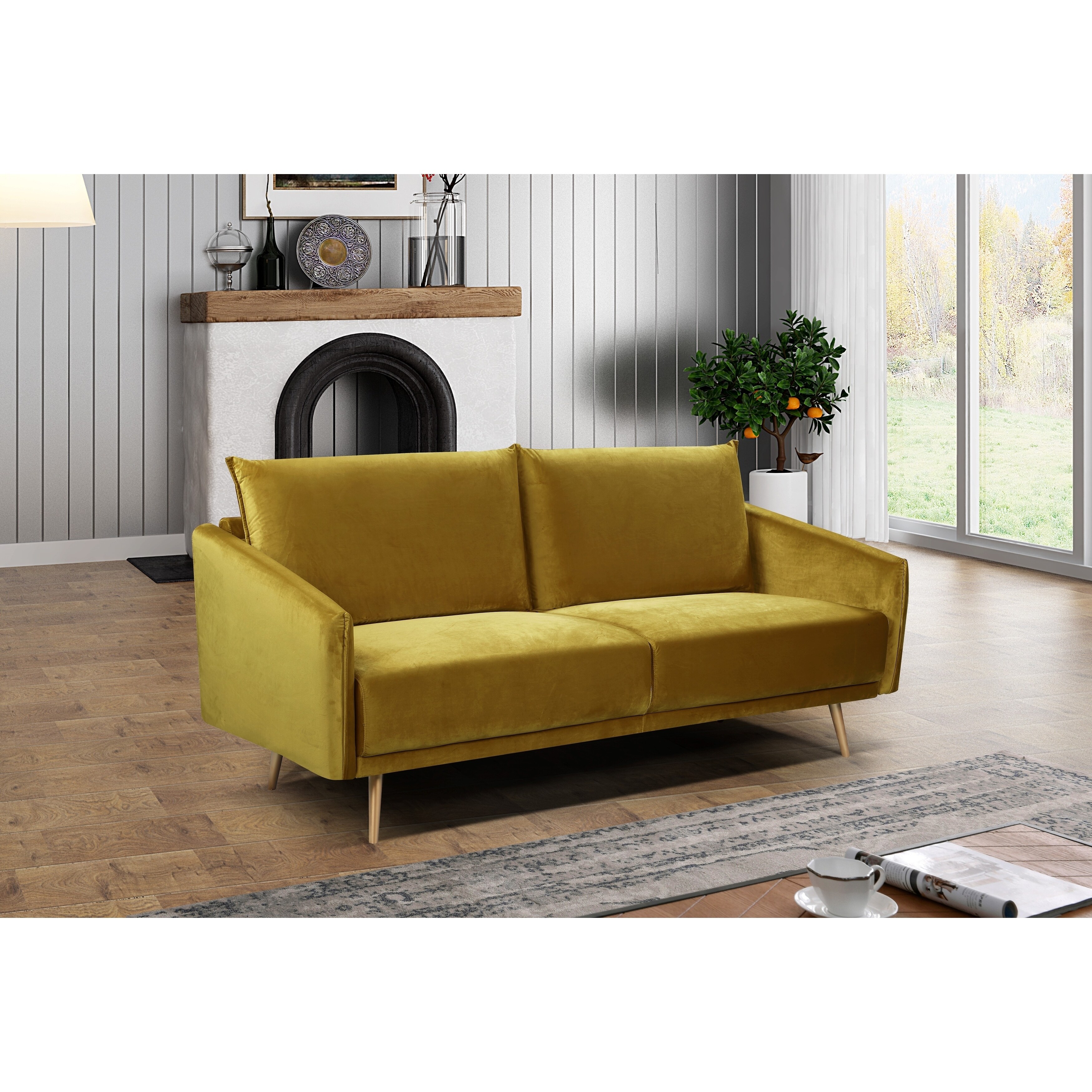 yellow velvet sofa