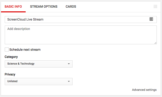 youtube dashboard live stream