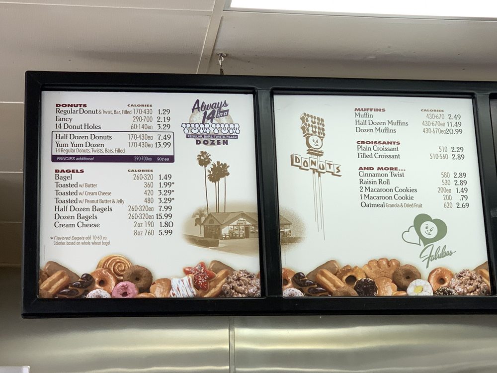 yum yum donuts menu