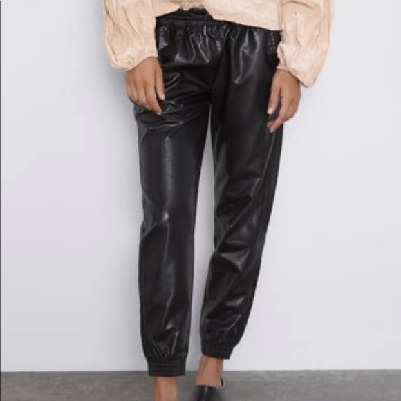 zara leather jogger