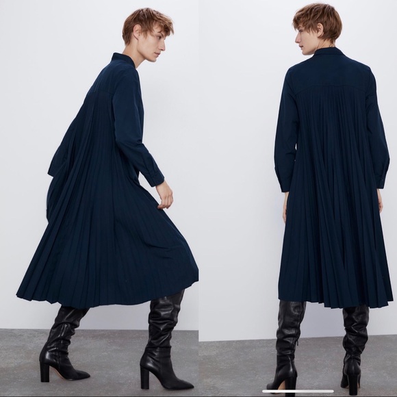 zara pleated shirt dress