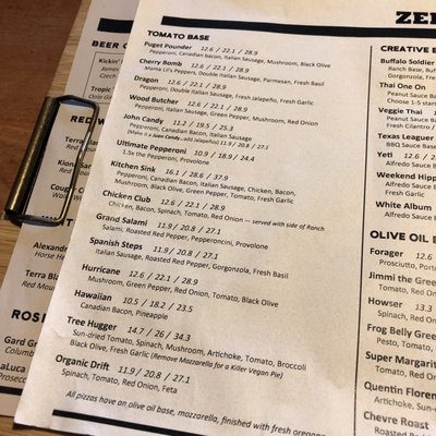 zeeks pizza menu